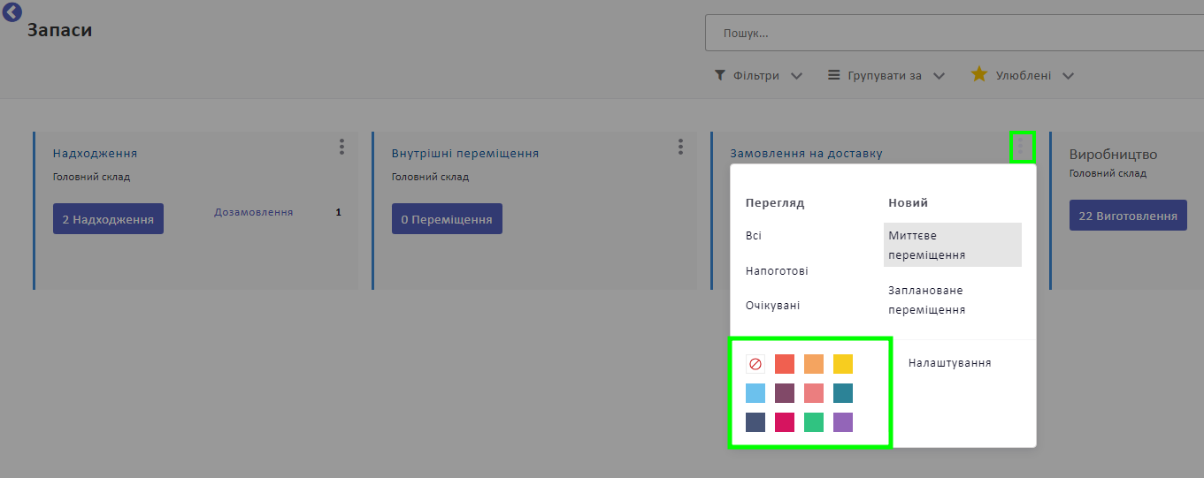 Перегляд дашборду з операціями доступний у меню Запаси > Панель приладів.