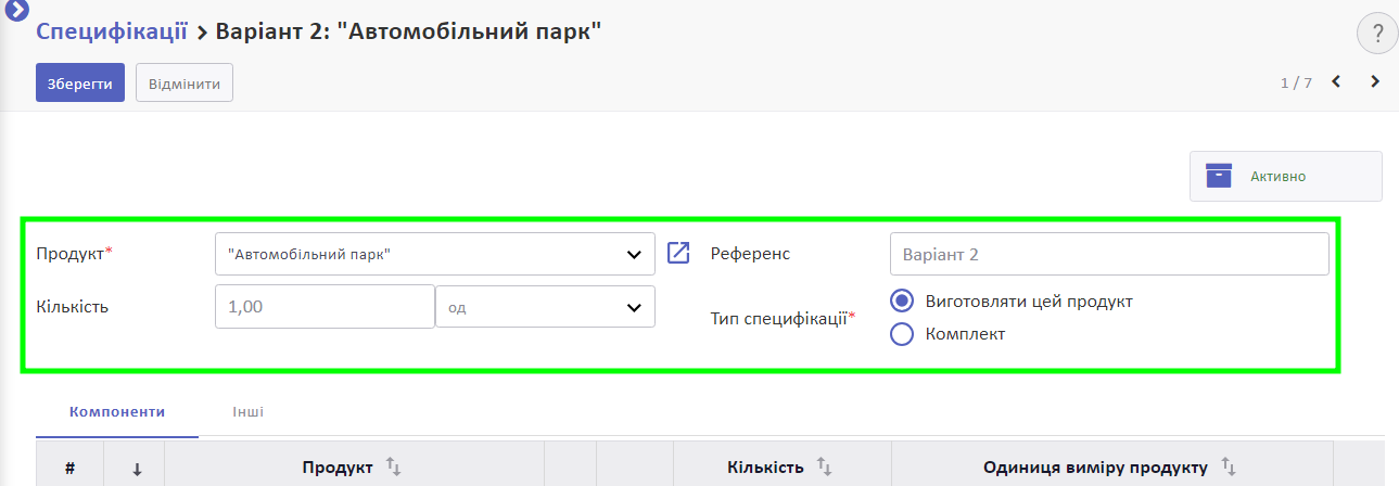 У полі Референс ви можете вказати нотатку про цю специфікацію, наприклад, вкажіть який це варіант, якщо ви маєте декілька специфікацій для одного товару.