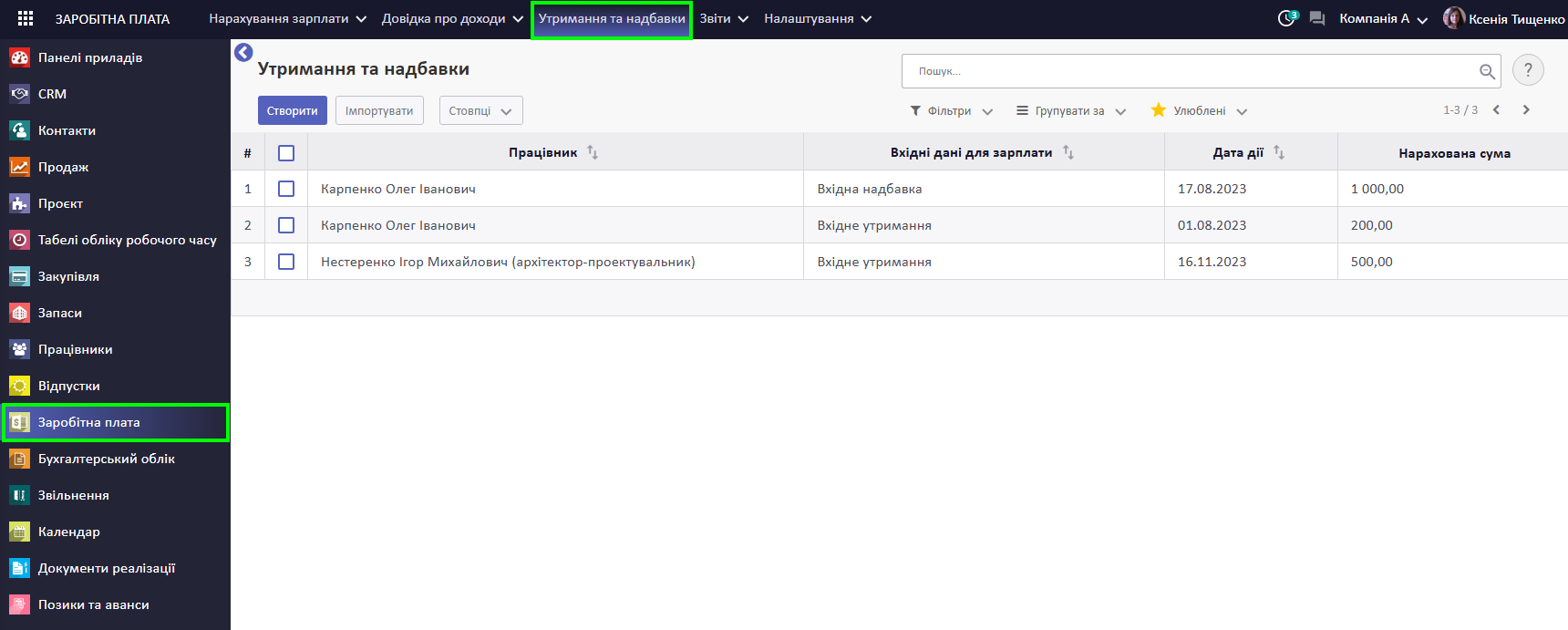 Утримання чи надбавка створено. Воно буде враховано під час нарахування заробітної плати за обраним працівником.