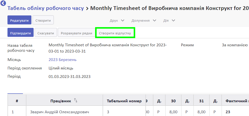 Перед створенням табеля рекомендуємо перевірити, чи усі відпустки за відповідний період були внесені у систему та затверджені.