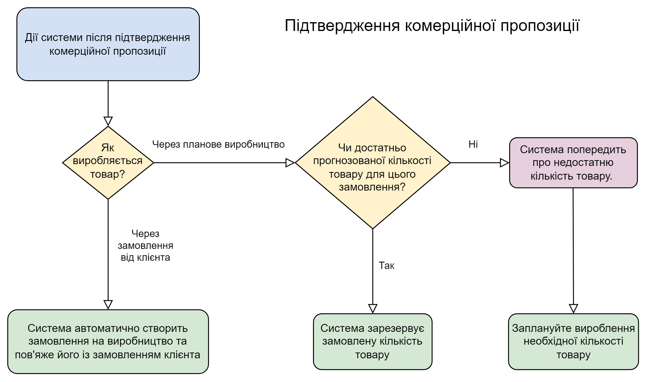 Після підтвердження комерційної пропозиції залежно від налаштувань товару, система зробить наступні дії: